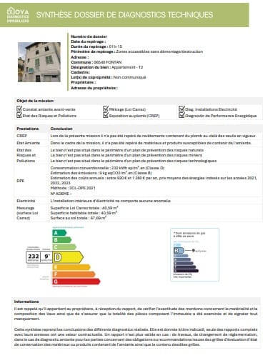 Chaque rapport est accompagné d'un numéro d'identification enregistré auprès des organismes compétents — ADEME pour le DPE, organismes accrédités pour l'amiante. Ce numéro est la preuve de validité juridique du document. Sans lui, le diagnostic n'est pas opposable.